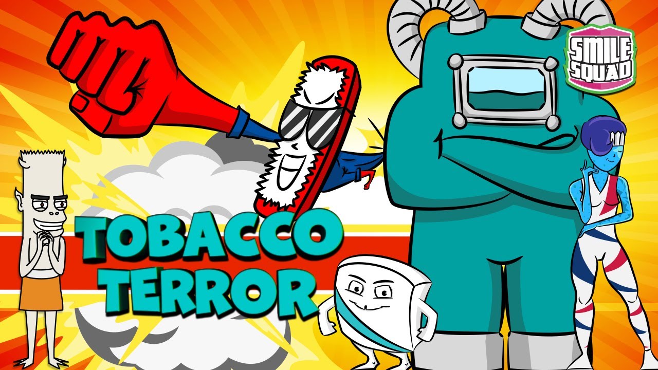 Tobacco Terror has appeared to threaten good dental health! MCNA's Smile Squad is back to fight Psycho-Cig and help kids like you choose good dental health. Watch our heroes lead the way to say "NO" to cigarettes and all forms of tobacco!